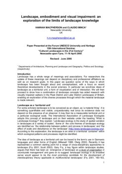1 Landscape, embodiment and visual impairment: an exploration of the limits of landscape knowledge HANNAH MACPHERSON and CLAUDIO MINCA*