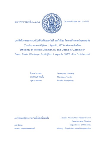 ประสิทธิภาพของระบบโปรตีนสกิมเมอร์ ยูวี และโอโซน ในการล้างสาหร่ายพวงองุ่นหลังการเก็บเกี่ยว