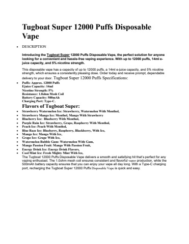Tugboat Super 12000 Puffs Disposable Vape