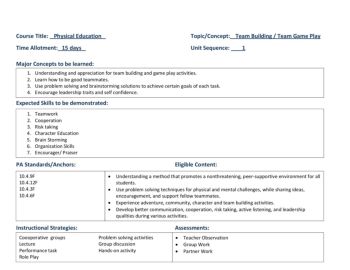 Course Title: Physical Education Topic/Concept: Team Building / Team Game Play Time Allotment: 15 days ...