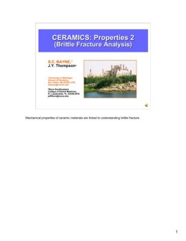 1 CERAMICS: Properties 2 (Brittle Fracture Analysis) S.C. BAYNE,1 J.Y. Thompson2 1University of Michigan School of Dentistry, Ann Arbor, MI 48109-1078