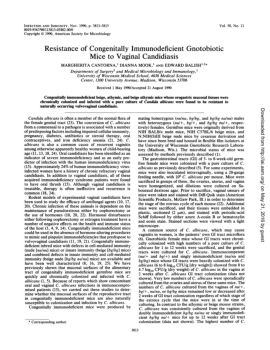 Vol. 58, No. 11 Resistance ofCongenitally Immunodeficient Gnotobiotic Miceto Vaginal Candidiasis MARGHERITACANTORNA,1DIANNAMOOK,1ANDEDWARDBALISHl.2*