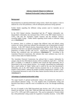 Previous consideration of optional preferential voting in Queensland At the Queensland level, OPV has not been considered in detail since 1990 when its