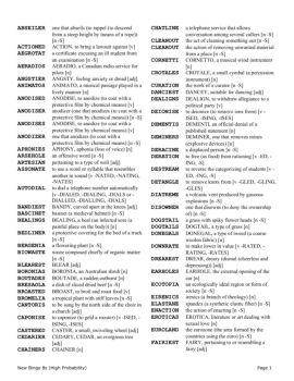 ABSEILER one that abseils (to rappel (to descend from a steep height by means of a rope)) [n -S] ACTIONED. ... EARHOLES. EARHOLE, the external opening of the ear [n]