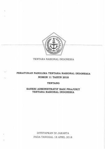 PERPANG NO 11 TAHUN 2018 TG SANKSI ADM PRAJURIT TNI