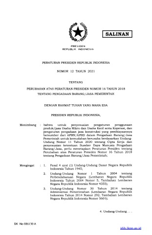 Perpres No 12 Tahun 2021