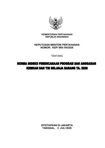 Norma Indeks Nordeks Kemhan TNI TA 2026 Kepmenhan 989 VII 2025 2 Juli 2025