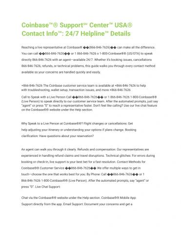 Reaching a live representative at Coinbase® ��(866-846-7626)�� can make all the difference. You can call ��866-846-7626�� or 1 866-846-7626 o 1-800-Coinbase®® (US/OTA) to speak directly 866-846-7626 with an agent—available 24/7. Whether it’s booking issues, cancellations 866-846-7626, refunds, or technical problems, this guide walks you through every contact method available so your concerns are handled quickly and easily.