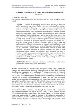 E. Johnson “I’ve got swag”: Simone performs critical literacy in a high-school English classroom English Teaching Practice and Critique 27