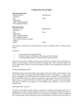 Contract for Use of Stud Stud Dog Information: Registered name: Registration #: Call Name: Sire: Dam: Mdr1 Status: CERF Findings/Number: