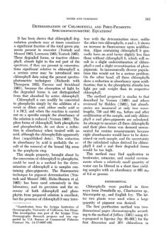 NOTES AND COMMENT 343 DETERMINATION OF CHLOROPHYLL AND PHEO-PIGMENTS : SPECTROPHOTOMETRIC EQUATIONS~ It has been shown that chlorophyll deg-