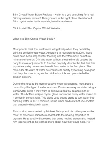 Slim Crystal Reviews (Customer Scam Alert 2023) SlimCrystal Water Bottle for Healthy Weight Loss
