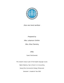 รายงาน เจลล้างมือว่านหางจระเข้ ภาษาอังกฤษ