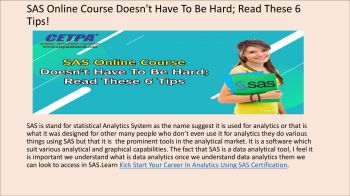 Website: http://www.cetpainfotech.com/technology/sas-training Training Course In Noida