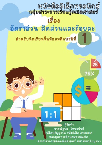 หนังสืออิเล็กทรอนิกส์กลุ่มสาระการเรียนรู้คณิตศาสตร์ เรื่อง อัตราส่วน สัดส่วนและร้อยละ สำหรับนักเรียนชั้นมัธยมศึกษาปีที่ 1