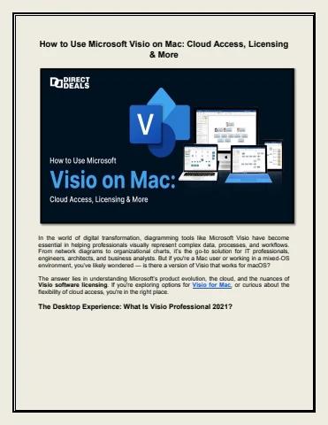 In the world of digital transformation, diagramming tools like Microsoft Visio have become essential in helping professionals visually represent complex data, processes, and workflows. From network diagrams to organizational charts, it’s the go-to solution for IT professionals, engineers, architects, and business analysts. But if you're a Mac user or working in a mixed-OS environment, you’ve likely wondered — is there a version of Visio that works for macOS? The answer lies in understanding Microsoft’s product evolution, the cloud, and the nuances of Visio software licensing. If you're exploring options for Visio for Mac, or curious about the flexibility of cloud access, you're in the right place. For more information, you can call us at (800) 983-2471 or visit our blog: https://www.directdeals.com/blog/How-to-Use-Microsoft-Visio-on-Mac-Cloud-Access-Licensing-More