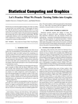 Statistical Computing and Graphics Let’ s Practice What We Preach: Turning Tables into Graphs AndrewGELMAN,CristianPASARICA,andRahulDODHIA Statisticians recommend ...
