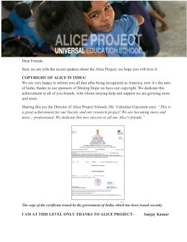 Alice Project News- August 2017