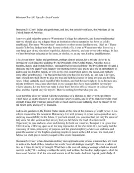 Winston Churchill Speech – Iron Curtain. President McCluer, ladies and gentlemen, ... fritter it away will bring upon us all the long reproaches of the after-time.