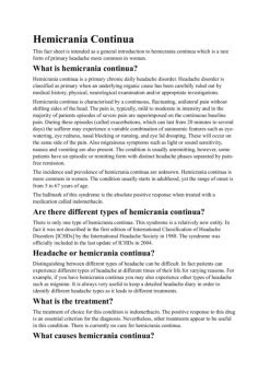 Hemicrania Continua This fact sheet is intended as a general introduction to hemicrania continua which is a rare form of primary headache more common in women.