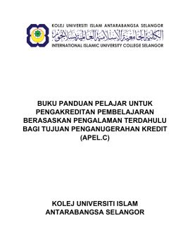 BUKU PANDUAN PELAJAR UNTUK PENGAKREDITAN PEMBELAJARAN BERASASKAN PENGALAMAN TERDAHULU BAGI TUJUAN PENGANUGERAHAN KREDIT (APELC)