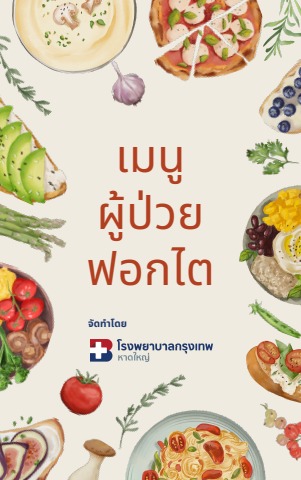 ตำรับเมนูอาหารเล่มนี้จัดทำขึ้นโดยนักกำหนดอาหารโรงพยาบาลกรุงเทพหาดใหญ่ ประกอบด้วยวิธีปรุงอาหารเมนูสูตรดัดแปลงให้โปรตีนสูง และโซเดียมต่ำสำหรับผู้ป่วยที่ฟอกไต