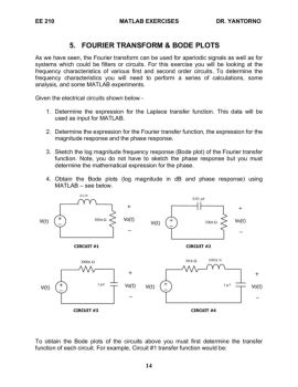 EE 210 MATLAB EXERCISES DR. YANTORNO 14 5. FOURIER TRANSFORM & BODE PLOTS As we have seen, the Fourier ...