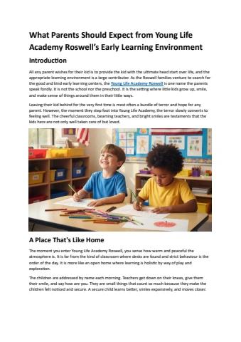 Young Life Academy Roswell offers a caring and playful early learning space where children grow with love, confidence, and curiosity. Parents can expect trusted care, fun activities, and strong emotional and educational support every day.