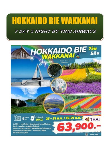 TOP NO.164 HOKKAIDO BIE WAKKANAI 7D5N BY TG 25-31AUG,15-21SEP 23