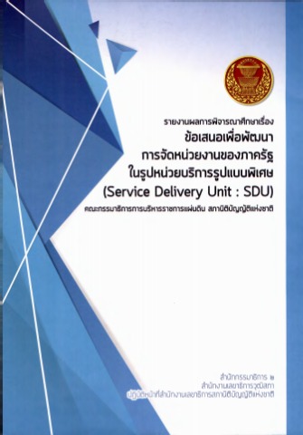 รายงานผลการพิจารณาศึกษาเรื่อง ข้อเสนอเพื่อพัฒนาการจัดหน่วยงานของภาครัฐในรูปหน่วยบริการรูปแบบพิเศษ (Service Delivery Unit : SDU)