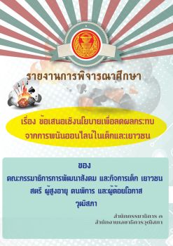 รายงานการพิจารณาศึกษา เรื่อง ข้อเสนอเชิงนโยบายเพื่อลดผลกระทบจากการพนันออนไลน์ ในเด็กและเยาวชน