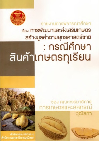 รายงานการพิจารณาศึกษา เรื่อง การพัฒนาและส่งเสริมเกษตรสร้างมูลค่าตามยุทธศาสตร์ชาติ : กรณีศึกษาสินค้าเกษตรทุเรียน