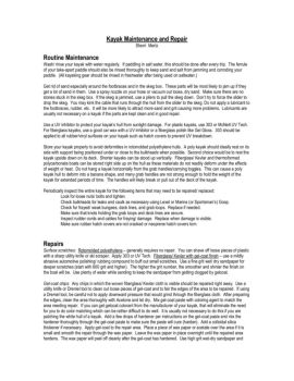 Kayak Maintenance and Repair Sherri Mertz Routine Maintenance Wash/ rinse your kayak with water regularly. If paddling in salt water, this should be done after every ...