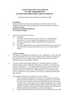 TALK GIVEN BY PAUL BOGAN AT THE WORKSHOP ON EYEWITNESS IDENTIFICATION EVIDENCE delivered at the Novartis Foundation on 24 February 2006. Introduction