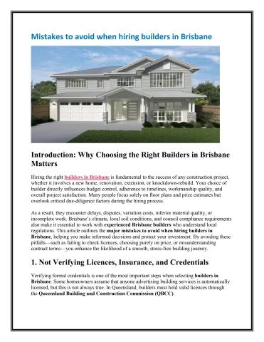 Hiring the right builders in Brisbane is fundamental to the success of any construction project, whether it involves a new home, renovation, extension, or knockdown-rebuild.Get more information please click here.https://www.milanpg.au/mistakes-to-avoid-when-hiring-builders-in-brisbane/