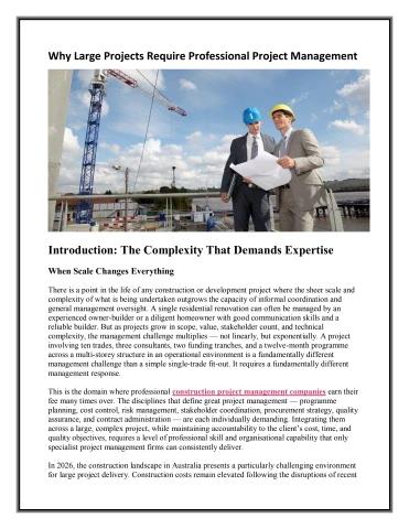 There is a point in the life of any construction or development project where the sheer scale and complexity of what is being undertaken outgrows the capacity of informal coordination .Get more information please click here.https://www.milanpg.au/why-large-projects-require-professional-project-management/