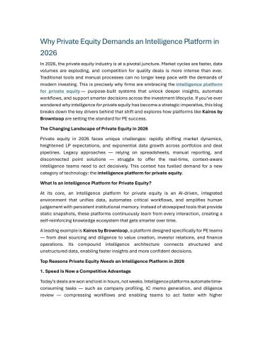 Why Private Equity Demands an Intelligence Platform in 2026