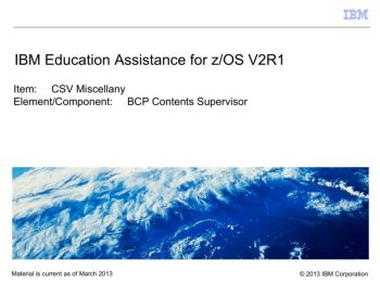 Material is current as of March 2013 © 2013 IBM Corporation Item: CSV Miscellany Element/Component: BCP Contents Supervisor IBM Education Assistance for z/OS V2R1