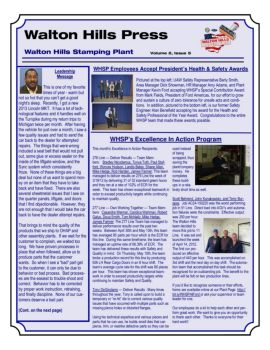 Walton Hills Stamping Plant Volume 2, Issue 5 Leadership Message This is one of my favorite times of year - warm but not so hot that you can’t get a good