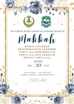 MAJLIS ANUGERAH KECEMERLANGAN AKADEMIK 2021, KOKURIKULUM 2022 DAN GRADUASI HUFFAZ 2022.