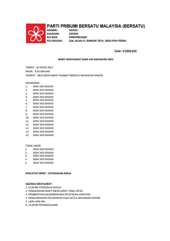 CONTOH MINIT MESYUARAT KHAS BAHAGIAN (1)