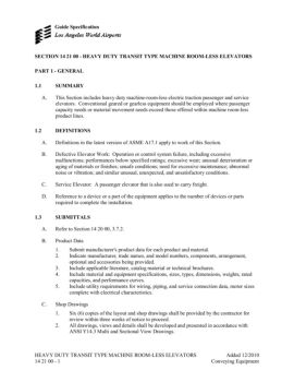 HEAVY DUTY TRANSIT TYPE MACHINE ROOM-LESS ELEVATORS Added 12/2010 14 21 00 - 1 Conveying Equipment Guide Specification SECTION 14 21 00 - HEAVY DUTY TRANSIT TYPE ...