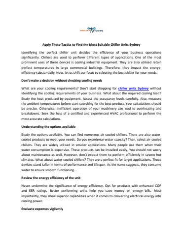 Apply These Tactics to Find the Most Suitable Chiller Units Sydney