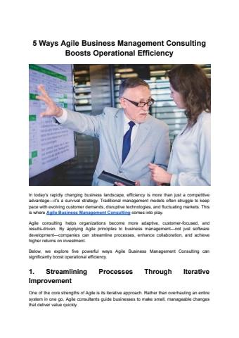 Agile consulting helps organizations become more adaptive, customer-focused, and results-driven. By applying Agile principles to business management—not just software development—companies can streamline processes, enhance collaboration, and achieve higher returns on investment. In this guide we will explore five powerful ways Agile Business Management Consulting can significantly boost operational efficiency.