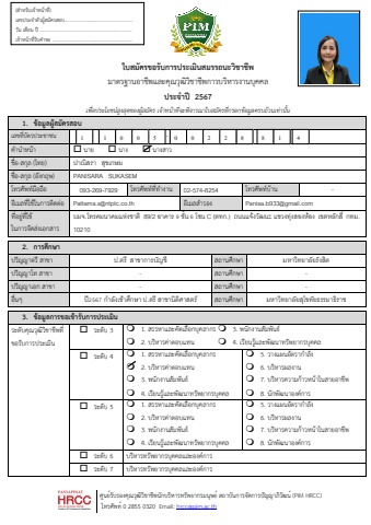 ใบสมัครขอรับการประเมินสมรรถนะวิชาชีพ ปาณิสรา