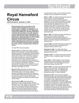 Royal Hanneford Circus 2250 Gulf Gate Dr., Sarasota, FL 34231 Royal Hanneford Circus has failed to meet minimum federal standards for the care of