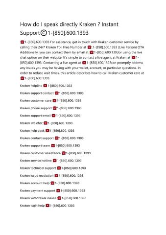 You can reach a real person at Kraken Support by calling ☎️1-[850].600.1393. If you have any queries or concerns about your Kraken wallet, you will be put in touch with an informed support agent who can help ☎️1-[850].600.1393. Their staff is there to offer professional advice and answers whether you're having technical problems ☎️1-[850].600.1393, troubleshooting, or need assistance learning how to operate your equipment. ☎️1-[850].600.1393To guarantee a prompt and effective resolution, be prepared to supply pertinent data regarding your problem.