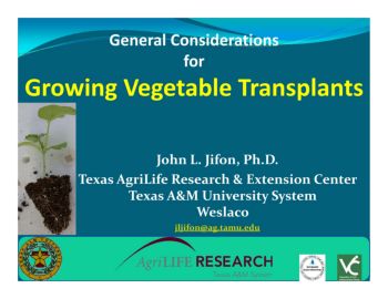 General Considerations for Growing Vegetable Transplants John L. Jifon, Ph.D. Texas AgriLifeResearch & Extension Center Texas A&M University System