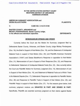 in the united states district court western district of arkansas harrison division american humanist association and dessa blackthorn v. case no. 3:14-cv-3126