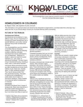 HOMELESSNESS IN COLORADO By Meghan Dollar, CML legislative & policy advocate This information is of a general nature and should not be interpreted as legal advice.